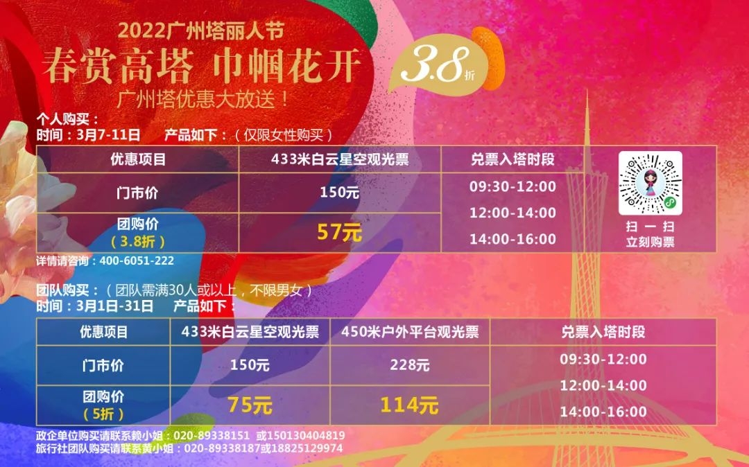 展商优惠丨57元登广州塔!3月8日丽人节女神专属福利来啦!