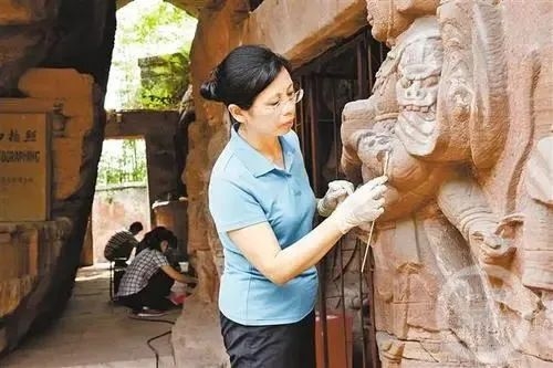 在文物修复工作中,她总结出“望闻问切”文物病害诊断“四诊法”,对大足石刻研究院的石像进行细心“诊疗”,使这些受损石刻重获新生。她认为,作为一名共产党员,倾尽全力去保护修复文物,就是守护中华文化的辉煌。