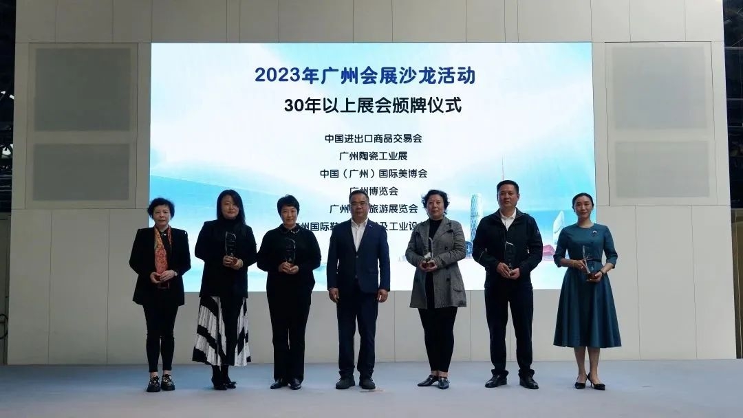 这些成绩的取得,都离不开相信广州、选择广州、扎根广州的会展企业,在沙龙活动现场,广州市商务局为54个在广州举办10年以上会展品牌颁发纪念牌。