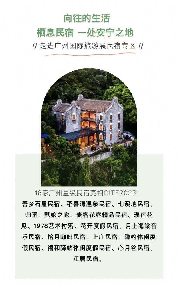 继2021年组织民宿参展后,今年广州市文化广电旅游局再次组织16家星级旅游民宿参展。
