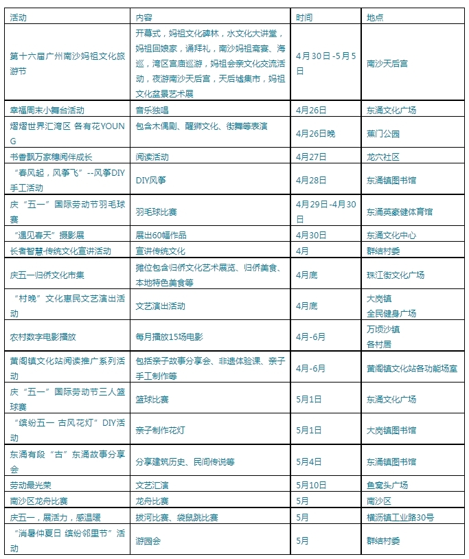 下面是五一期间南沙区的文旅活动推荐