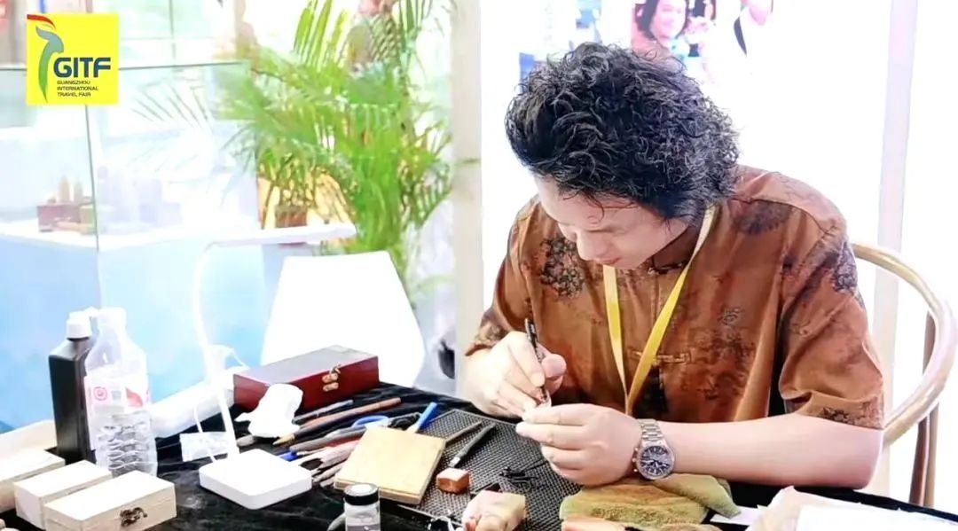 在开幕日下午,由@广州文化旅游 官方抖音账号发起的专场直播活动,特邀了国风主播与现场展商交流互动,各地文旅展商纷纷通过直播镜头向世界推介美好旅游目的地,更有非遗老师现场展示指尖上的艺术,为粉丝朋友们带来了一场精彩绝伦的文旅盛宴。
