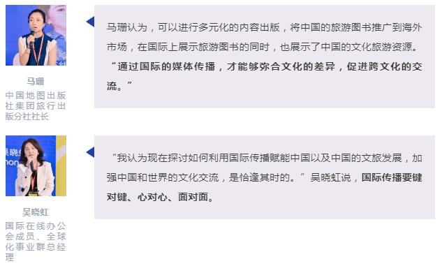 同为媒体人的马珊也提出了几个建议,包括在旅游推广的过程中要深入挖掘旅游目的地的文化内涵,不断地追求科技创新,尤其是在文化旅游推广的过程中,务必重视文化遗产的完整性和真实性。吴晓虹则形象地比喻,国际传播是一个大合唱,是一个交响乐,需要各方一起来努力。而同存异也很重要,世界文明是多样性的,在国际传播中要“美人之美,美美与共”。