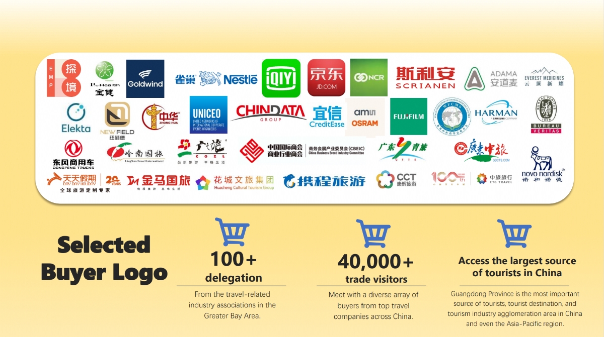 The exhibition will also gather domestic cultural and tourism departments/bureaus and enterprises, such as those from Chongqing, Guangzhou, Chengdu, Chenzhou, Yangzhou, Anshun, Qiqihar, Bijie, Yunfu, Meizhou, Qingyuan, Zhanjiang, Wushan, Shufu, Qiannan Prefecture, Mangshan Forest Park, Yanguan Ancient Town, Tongxiang Puyuan, Changbai Mountain, Zhangjiakou Shixuechuan, Tongxiang Wuzhen, and prominent enterprises like Guangdong CTS, Guangzhou Guangzhi Lü, China Comfort Travel, Guangzhou Tower, Easyway Travel, Happy Family, Guinness World Records, and Xiangyu Cultural Tourism.